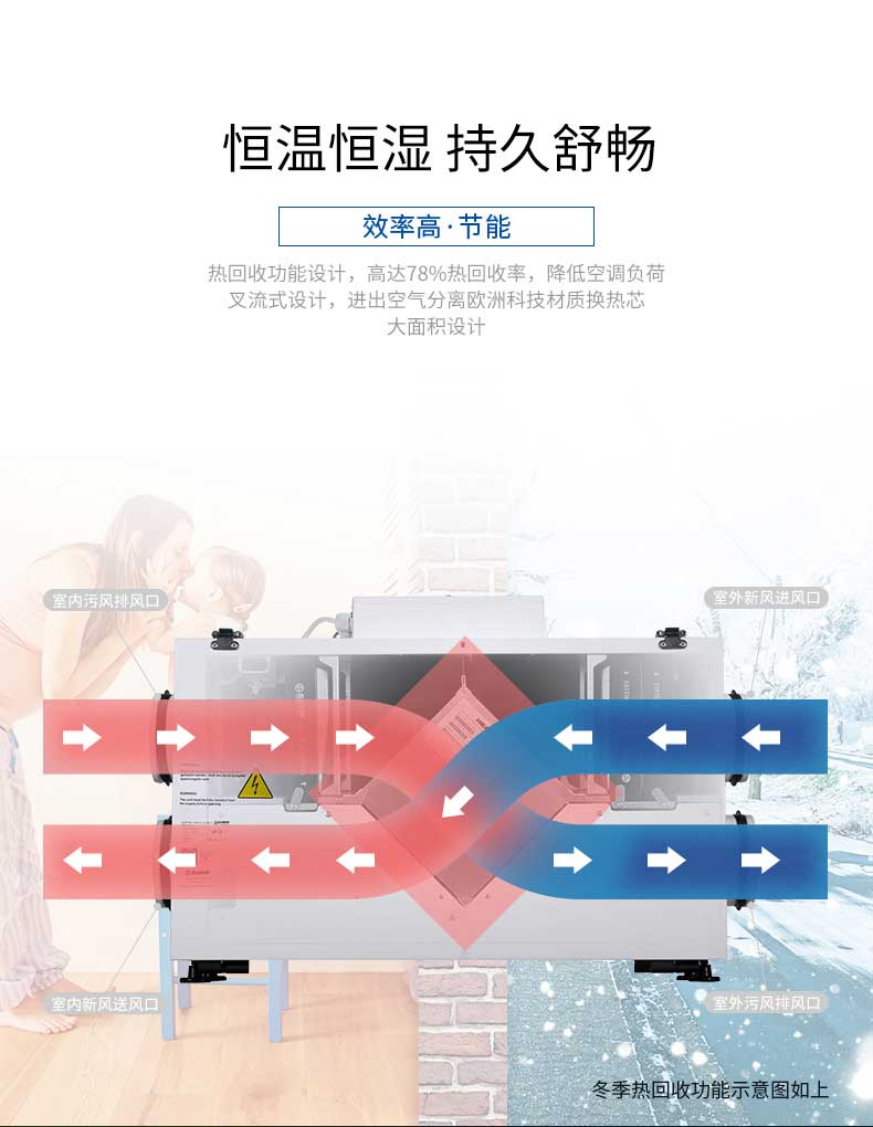 ●恒溫恒濕持久舒暢,高達78%熱回收率,降低空調負荷